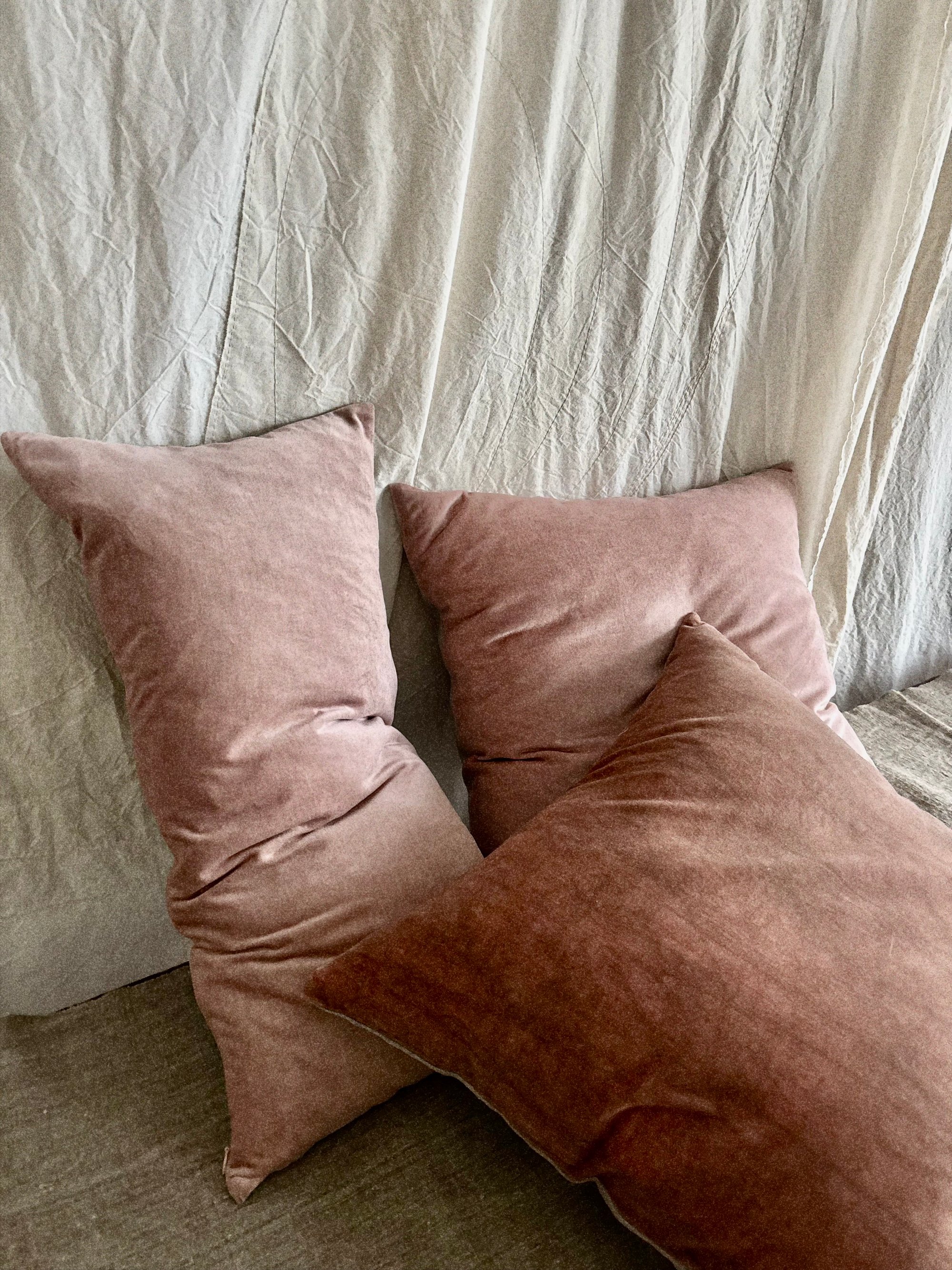 HAND DYED VELVET CUSHION COVER with invisible side zip and natural linen back.