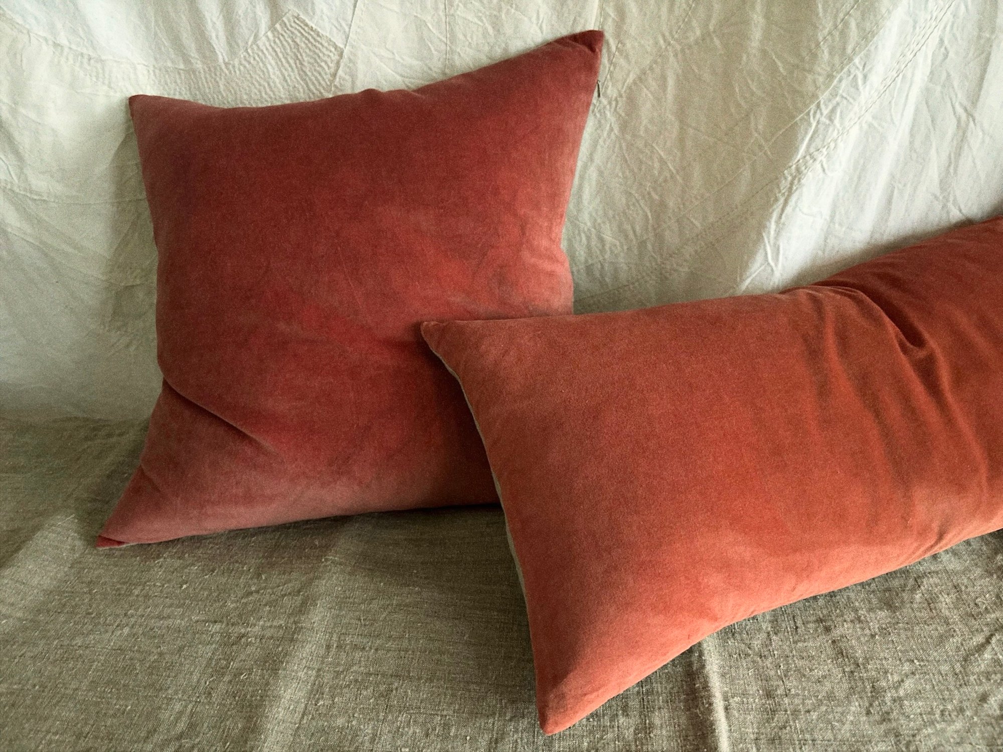HAND DYED VELVET CUSHION COVER with invisible side zip and natural linen back.